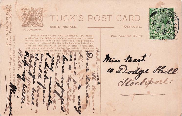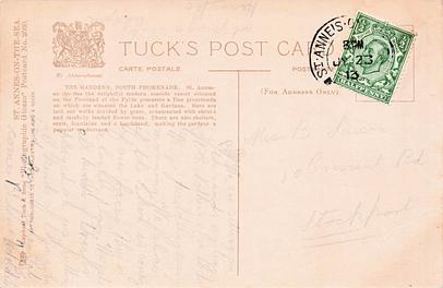 ART GRAVURE, PROCESSED IN SAXONY (in stamp box), PUBLISHED SPECIALLY FOR THE EXPRESS OFFICE, ST. ANNES-ON-THE-SEA, semi-perforated edges