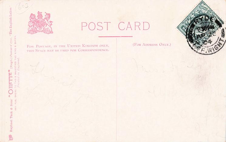 OILETTE, PRINTED IN ENGLAND, 2 backs, listed in 1904 POSTCARD Catalogue