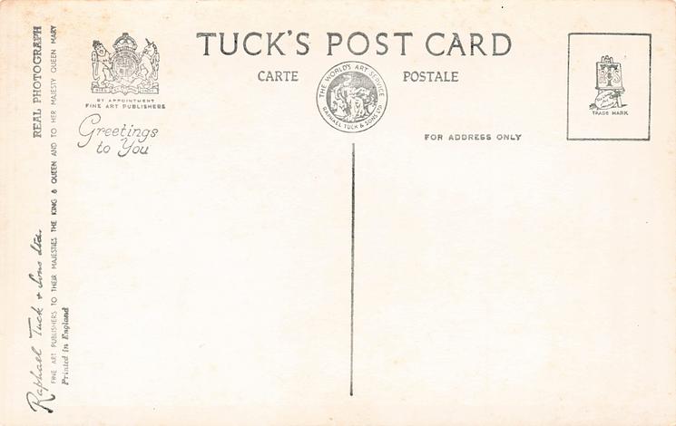 REAL PHOTOGRAPH, PRINTED IN ENGLAND, come TO BRING YOU GREETINGS or GREETINGS TO YOU on back, unnumbered