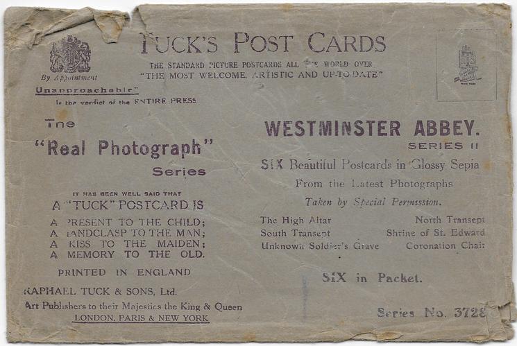 REAL PHOTOGRAPH, PRINTED IN ENGLAND, COPYRIGHT LONDON, listed in 1930 POSTCARD Catalogue