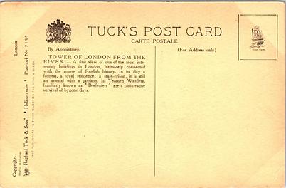 deep sepia, PHOTOGRAVURE, PRINTED IN ENGLAND, COPYRIGHT LONDON, listed in 1930 POSTCARD Catalogue