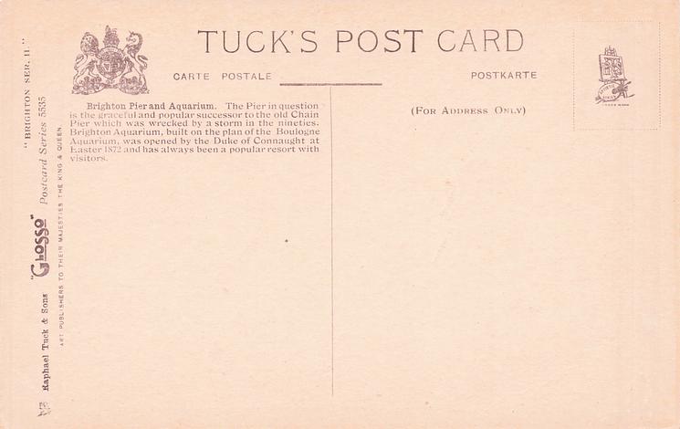 sepia or shades of grey/black, SILVERETTE, PHOTO BAVARIA (in stamp box or not), come opt in blue ARMS OF BRIGHTON, listed in RAPHAEL TUCK & SONS' LD. CHRISTMAS & NEW YEAR 1904/1905 catalogue