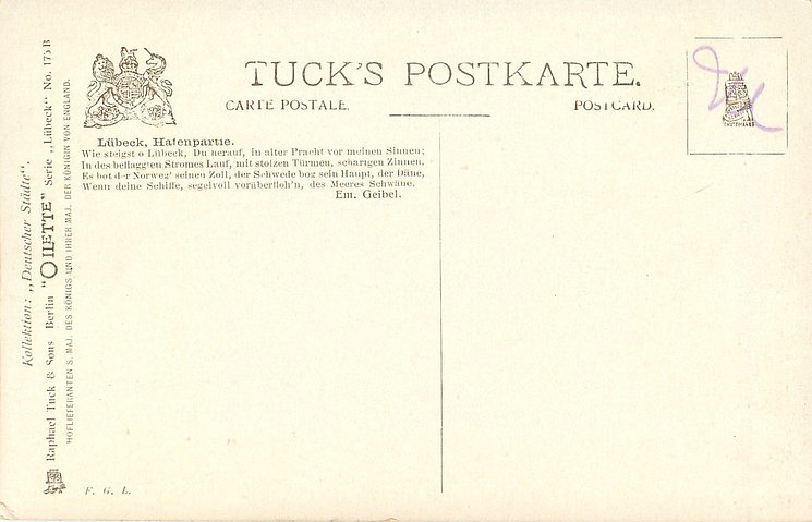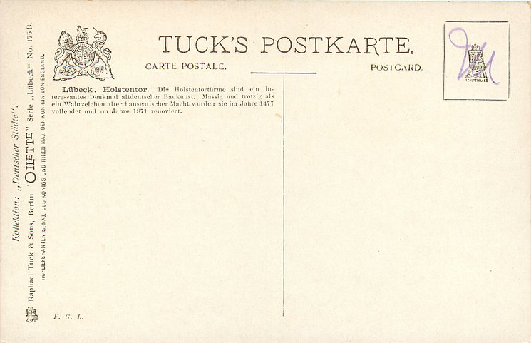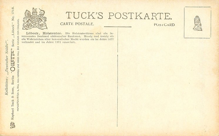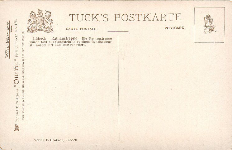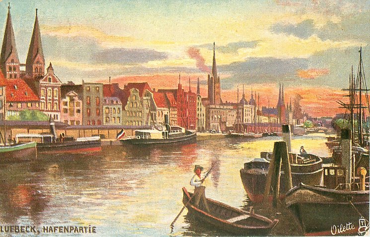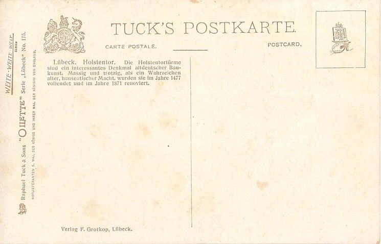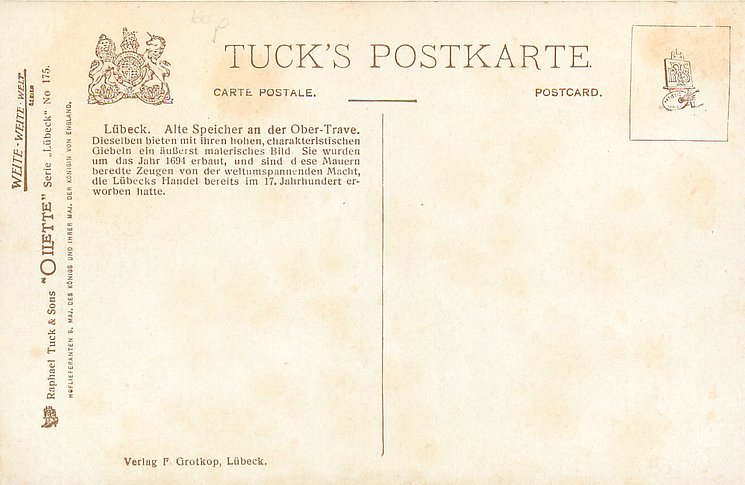 OILETTE,WEITE-WEITE- WELT, VERLAG F. GROTKOP, same images and card titles LUBECK DEUTSCHER STADTE OILETTE 175B