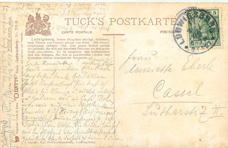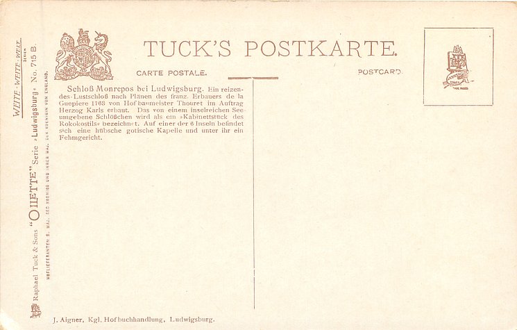 OILETTE WEITE-WEITE-WELT, suffix B, come with J. ALGNER, KGL. HOFBUCHHANDLUNG, LUDWIGSBURG