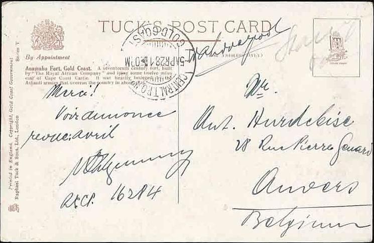 OILETTE (on front), PRINTED IN ENGLAND, 2 backs, COPYRIGHT GOLD COAST GOVERNMENT, for 1924 Wembley Exbn., see Perkins & Tonkin.