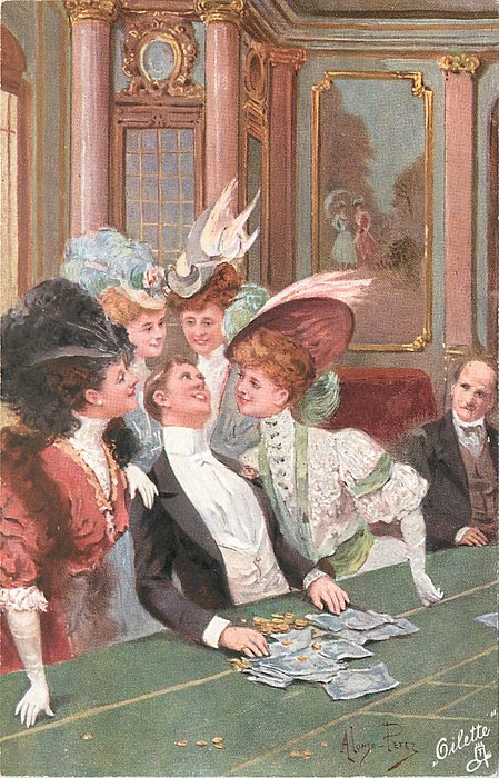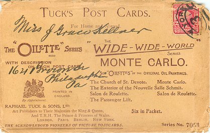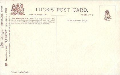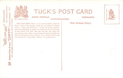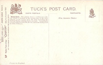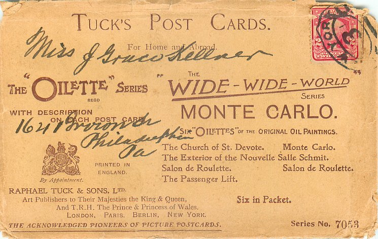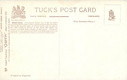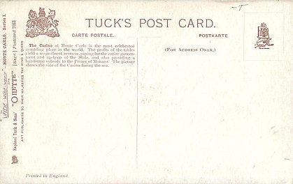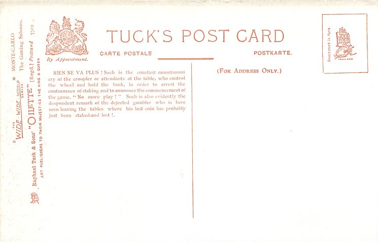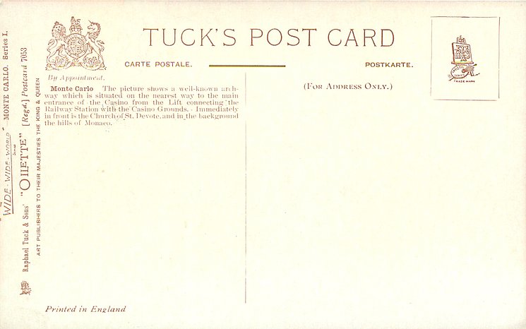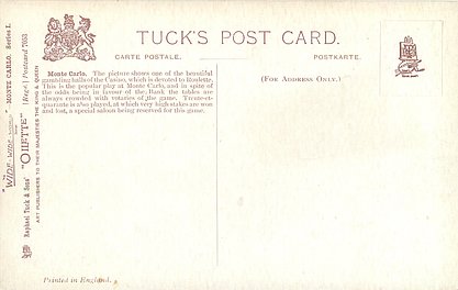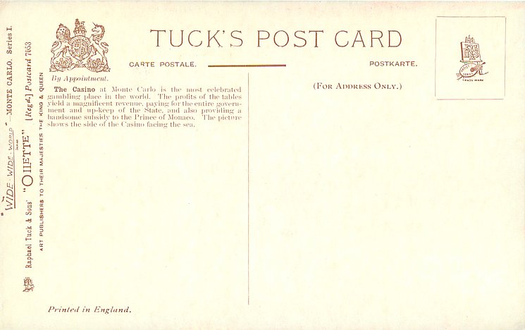 OILETTE, WIDE-WIDE-WORLD, PRINTED IN ENGLAND, 2 backs, listed in 1908/1909 & 1911/1912 & 1913/1914 Postcard Catalogues, same images French backs SERIE 7053 MONTE-CARLO I & III