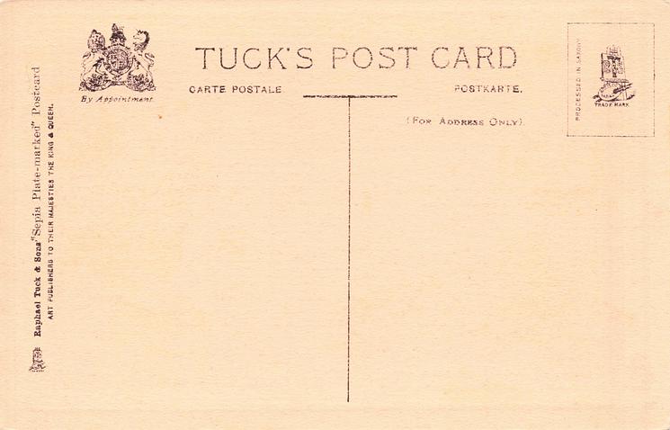 OILETTE, with and w/o BONNIE OF SCOTLAND, with and w/o COPYRIGHT LONDON, comes oilfacsim but not so trade named (OILFACSIM on packet, not on cards), comes opt. in red and blue AMERICAN Y.M.C.A., 7 backs, PRINTED IN ENGLAND, AFTER THE ORIGINAL PAINTING BY H.B. WIMBUSH., listed in 1908/1909 & 1911/1912 & 1930 POSTCARD Catalogues