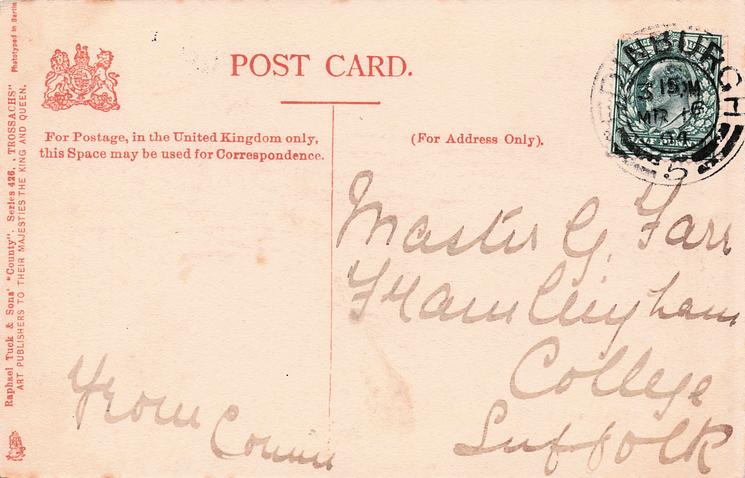 CHROMETTE, PRINTED IN ENGLAND, SPECIALLY PUBLISHED FOR J. CUMMINGS, PHOTOGRAPHER, ALLOA.
