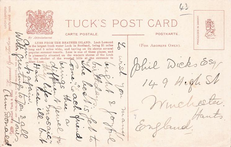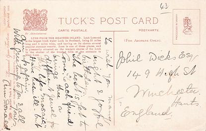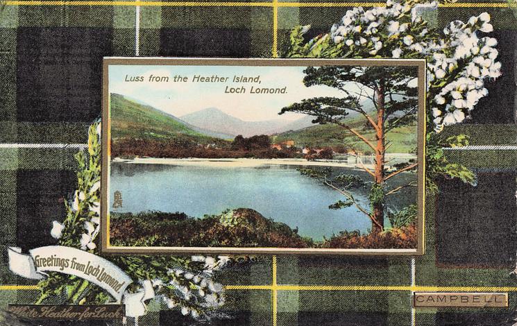 gilt, GREETINGS FROM LOCH LOMOND, WHITE HEATHER FOR LUCK, FRAMED GEM GLOSSO TARTAN, PROCESSED IN SAXONY (in stamp box), same images as set 1863