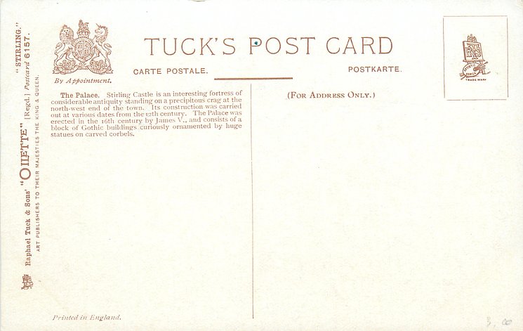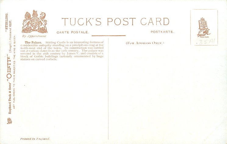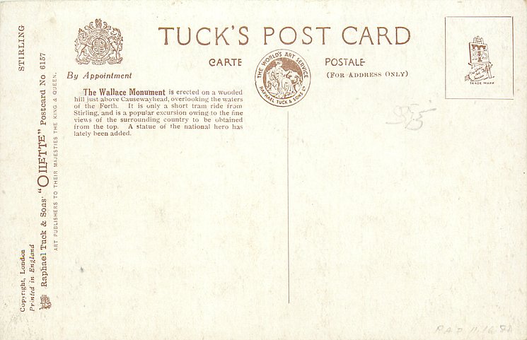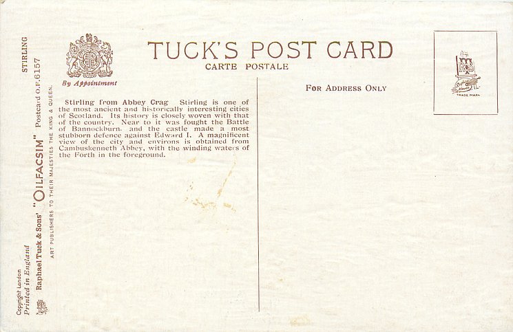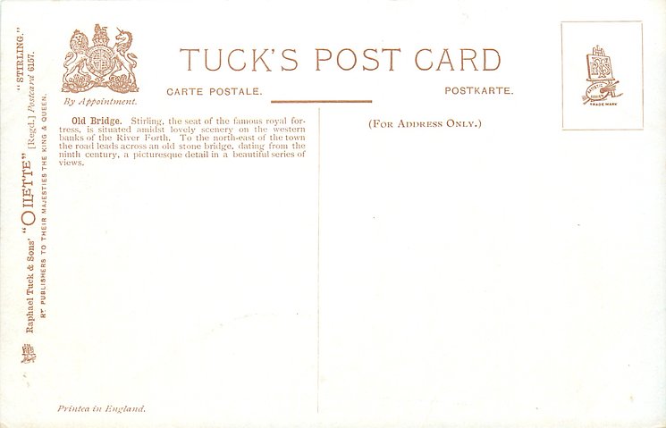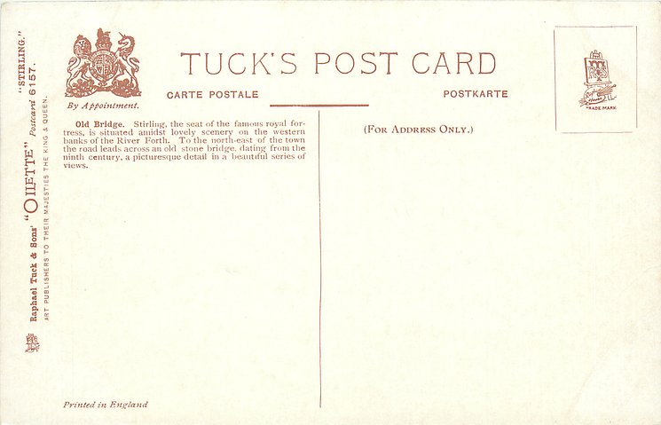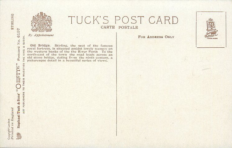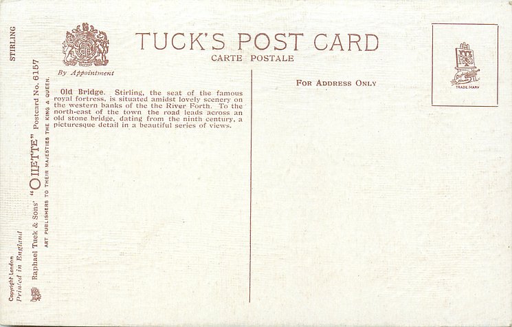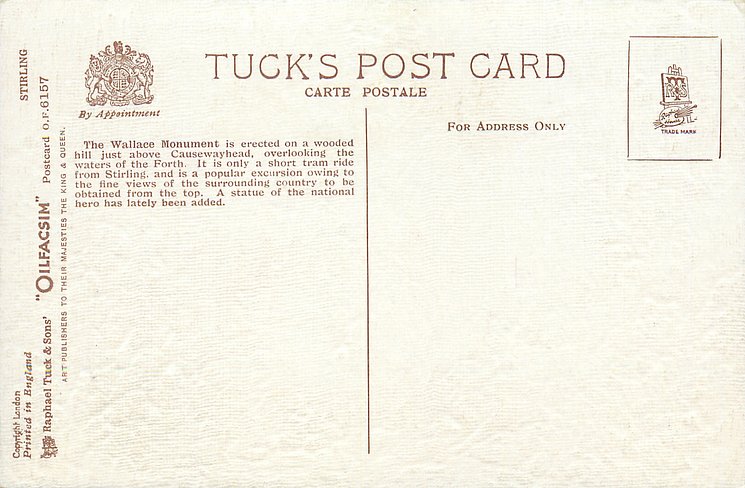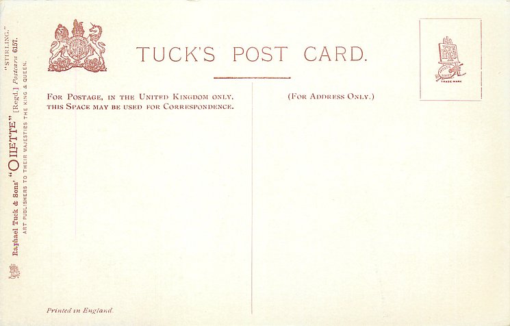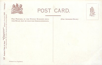 OILETTE, come with or without COPYRIGHT LONDON, come PRINTED IN ENGLAND or PRINTED IN THE UNITED KINGDOM, come OILFACSIM and Oilfacsim but not so trade-named, come opt. red & blue AMERICAN Y.M.C.A. logo, various printings up to 9 backs, listed in 1904/1905 & 1908/1909 & 1911/1912 &1930 POSTCARD Catalogues