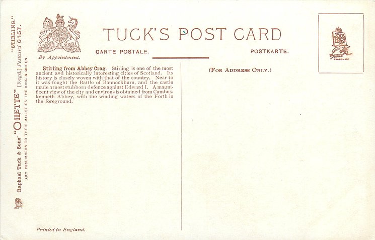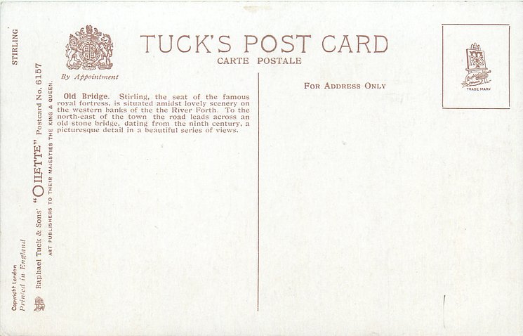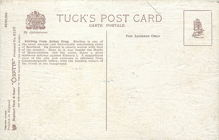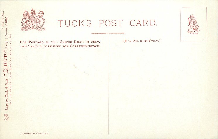 OILETTE, PRINTED IN ENGLAND, comes O.F. but not so trade named, same images as set 7512, listed in 1930 POSTCARD Catalogue