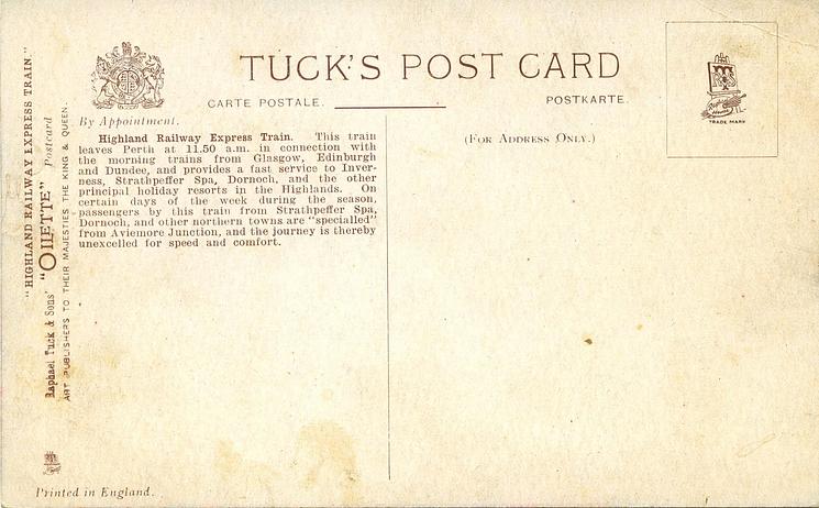 This image also comes as an un numbered card with a different title "Highland Railway Express Train ------- NOT "Scotch Expresses"