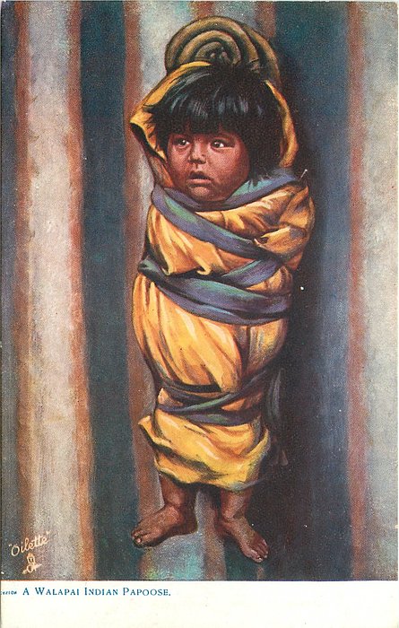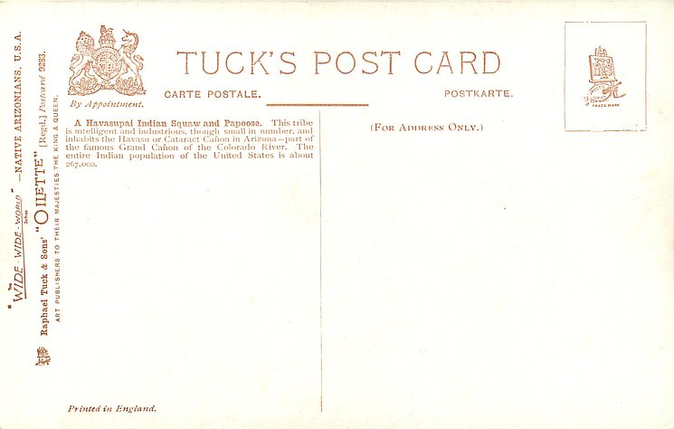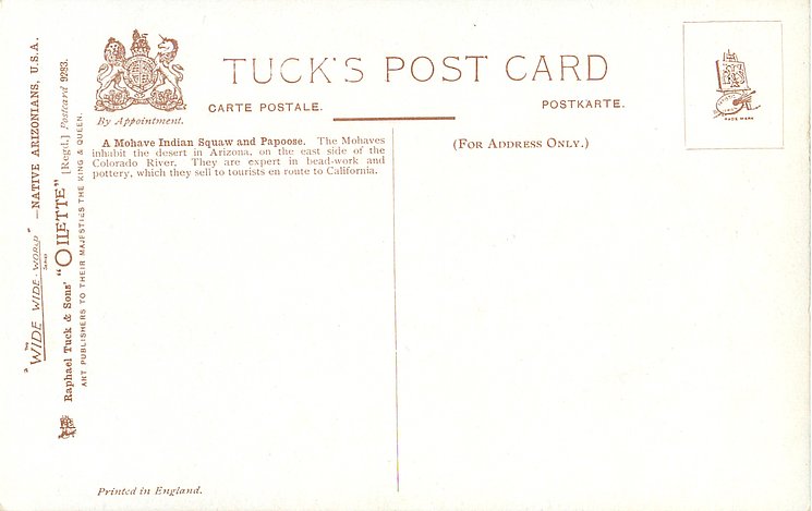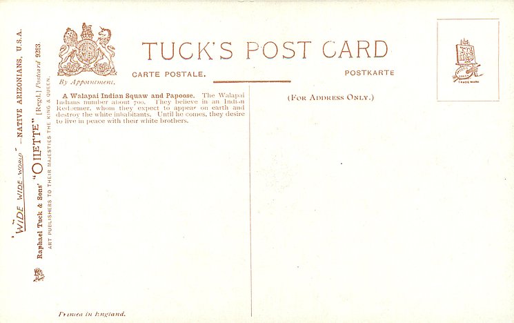 OILETTE, WIDE-WIDE-WORLD, PRINTED IN ENGLAND, listed as INDIAN BABIES & RED INDIAN BABIES in 1908/1909 & 1911/1912 & 1913/1914 & 1930 POSTCARD Catalogues, same images OILETTE 2431