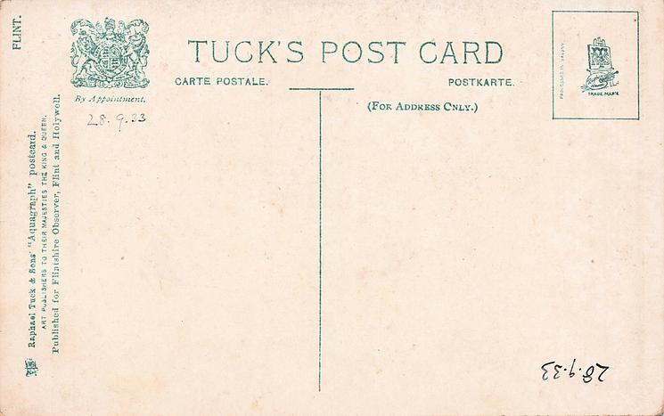 AQUAGRAPH, PROCESSED IN SAXONY (in stamp box), PUBLISHED FOR FLINTSHIRE OBSERVER, FLINT AND HOLYWELL., printing on back in green