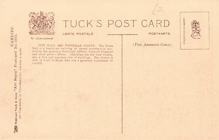 OILETTE, PRINTED IN ENGLAND, come opt. with Cardiff Coat of Arms on front, listed in 1911/1912 Postcard Catalogue