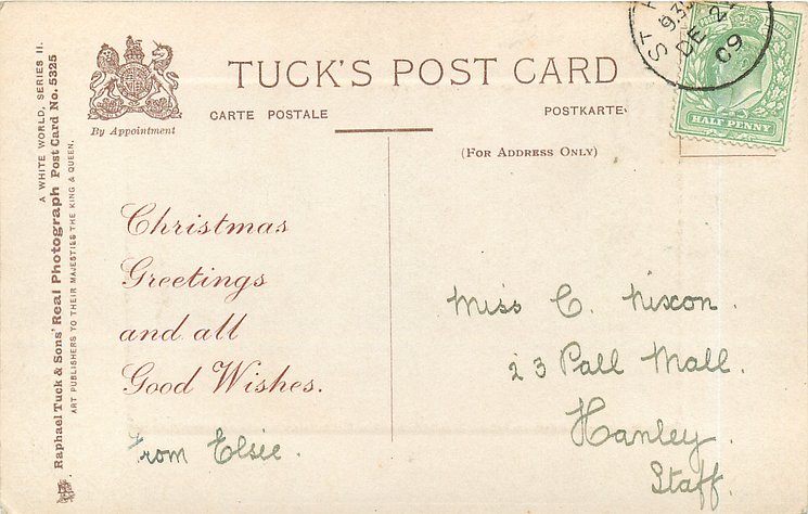 REAL PHOTOGRAPH, platemarked style, listed as WINTER SCENES in 1908/1909 & 1911/1912 Postcard Catalogue