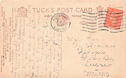 REAL PHOTOGRAPH, PRINTED IN ENGLAND, PUBLISHED FOR TEMPLAR CAFE, BALDOCK. PHONE: NO. 82 BALDOCK. BOOKING OFFICE FOR ALL COACHES.