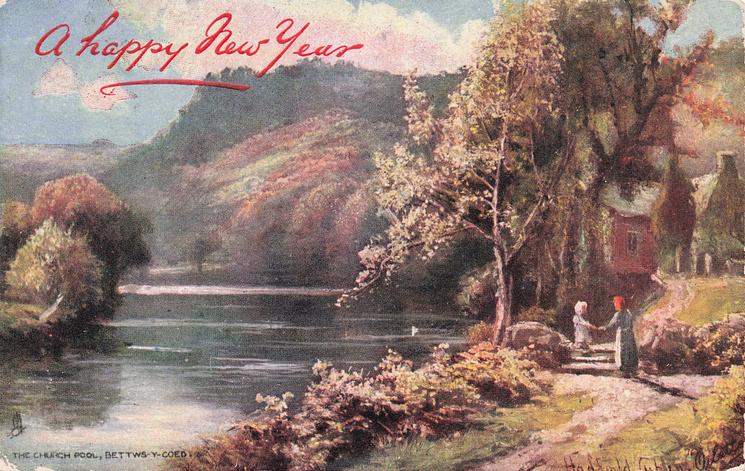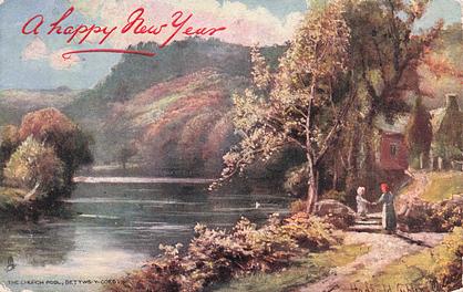 comes opt. in red A HAPPY CHRISTMAS(2 styles as reported by Wayne Rodwell) Panty or Pandy mill on back, Pandy in Welsh is a Fulling Mill (The cleaning of wool for cloth-making)