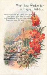verse:- MAY BLOSSOMS DECK THE PATH YOU TREAD, LOVE GUARD YOU DAY BY DAY- ALL BLESSINGS LIGHT ON YOUR DEAR HEAD FOR EVER, AND FOR AYE.
