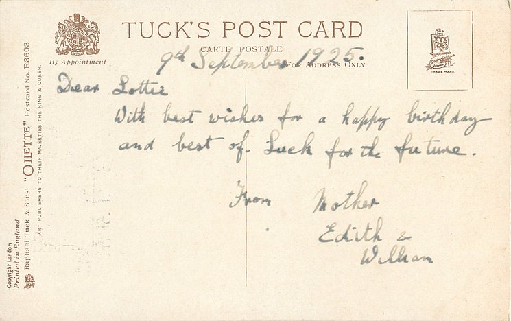OILETTE, PRINTED IN ENGLAND, COPYRIGHT LONDON, same images 2054, R 2054, same images with Xmas greetings 7542