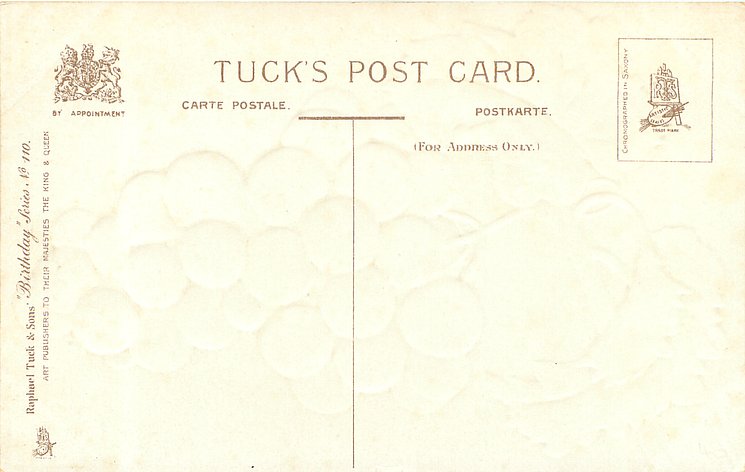 embossed, CHROMOGRAPHED IN SAXONY (in stamp box), listed in 1930 POSTCARD catalogue, same images, not greeting, in 6958
