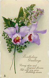 BIRTHDAY GREETINGS 2 orchids, lilac