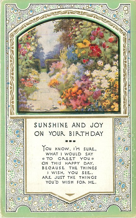 verse:- I WISH YOU HEALTH I WISH YOU WEALTH, AND TIME IN WHICH TO DO THE SORT OF THING THAT'S SURE TO BRING REAL HAPPINESS TO YOU