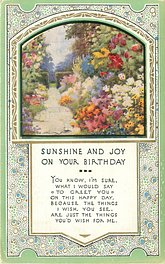 verse:- BIRTHDAYS COME AND GO- TAKE THEM AS YOU FIND THEM-BUT IF I LOOKED AS YOUNG AS YOU, BY JOVE! I WOULDN'T MIND THEM