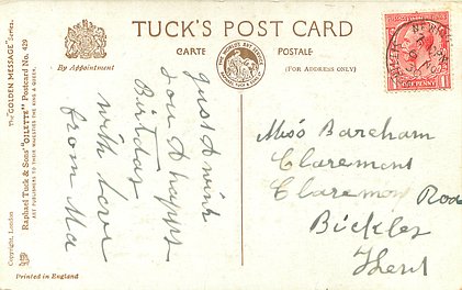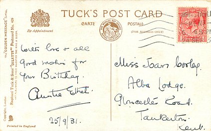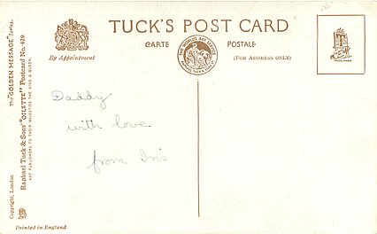 gilt, OILETTE, PRINTED IN ENGLAND, COPYRIGHT LONDON, very thick cards, same insets used for pairs of cards with different wording, green border design
