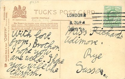 glossy, OILETTE, PRINTED IN ENGLAND, glossy, listed in 1912 Catalogue, same images & titles 1544, 3288