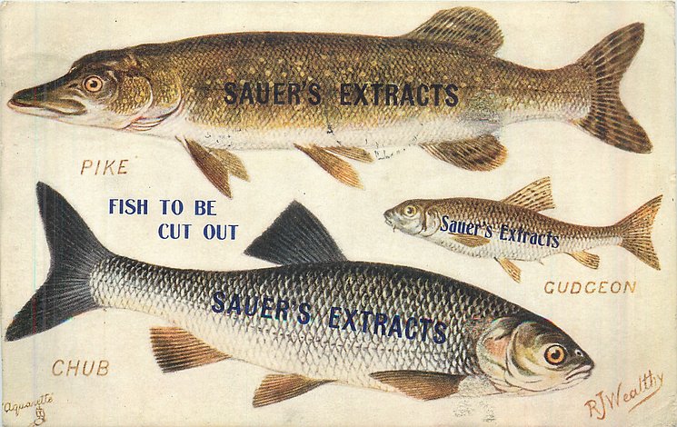 somes with opts. FISH TO BE CUT OUT and SAUER'S FISH on the sides of all three fish