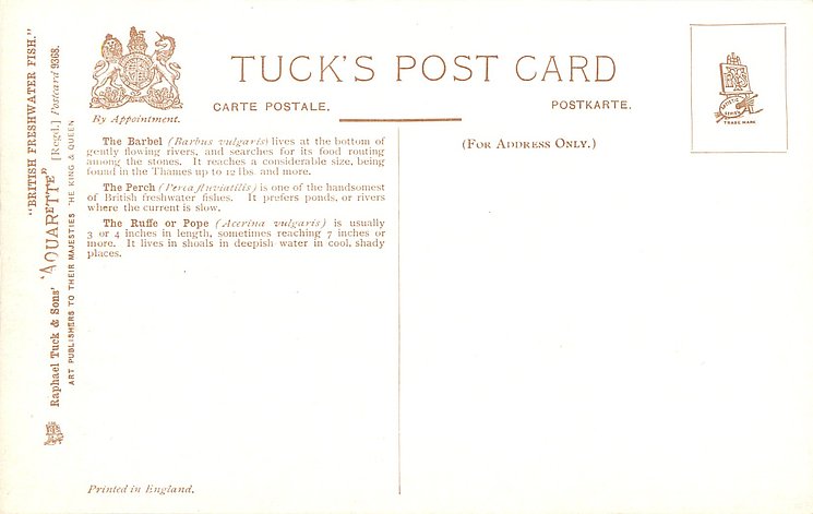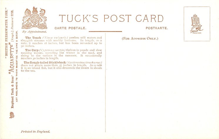 AQUARETTE, PRINTED IN ENGLAND, listed in 1911/1912 & 1912/1913 & 1913/1914 POSTCARD Catalogues, same images & card titles used for LONDON COUNTY COUNCIL REWARD CARD set