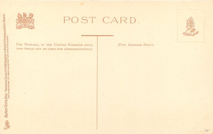 HUMOROUS, DESIGNED IN ENGLAND, CHROMOGRAPHED IN BAVARIA, listed in 1904 POSTCARD Catalogue