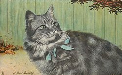 A REAL BEAUTY grey cat with blue bow