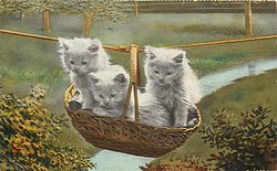TRAVELLING PERSIANS three kittens in basket suspended from line