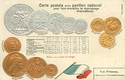 CARTE POSTALE AVEC PAVILLON NATIONAL coins