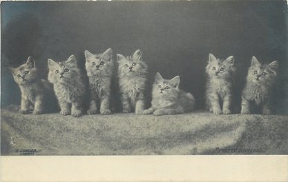 u/b or d/b, REAL PHOTOGRAPH, E. LANDOR (COPYRIGHT),, listed in 1904 & 1908/1909 POSTCARD Catalogue, most of these images come with French backs & titles, SERIE 252 & 409, many come PHOTOCHROME 6495/6496 CAT STUDIES & 70O6/7007 SAPPHIRE
