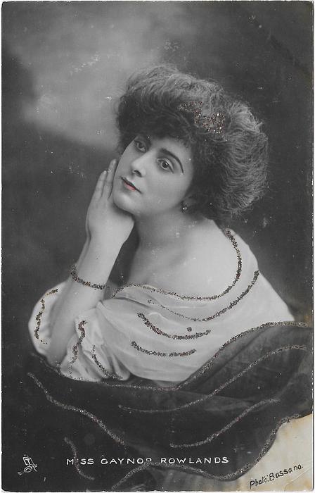 JOHNSTON & HOFFMAN, hand-coloured & glittered Gabrielle Ray (1883 Eng.- 1973 Surrey, Eng.) in "A Celebrated Case' 1893; in "The Orchid" Gaiety Th. 1903 (559);n
