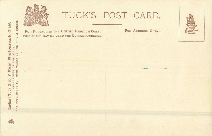 PHOTO BASSANO, stands facing front low cut dress with much lace, holds up fan in her right hand , hand-coloured, same image P154 Marie Studholme 1872 Eng.-1950 London) was Nora in "The Messenger Boy" Gaiety Th. London 1900 (429)