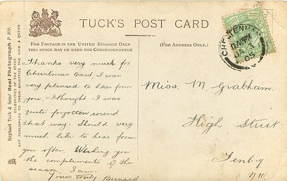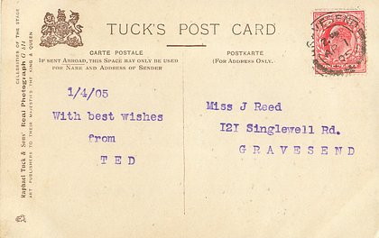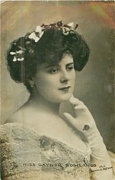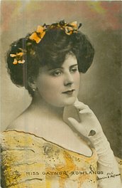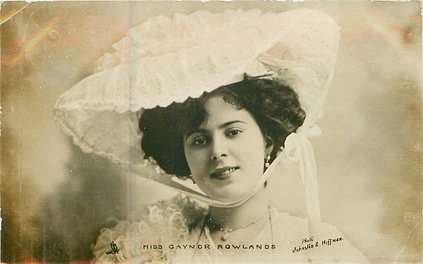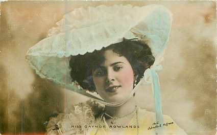 Prefix and number obscured by writing but can be made out if image enlarged. PHOTO JOHNSTON & HOFFMAN Gaynor Rowlands ( 1883 London-1906 London) a Gaiety Girl in Toreador, My Lady Molly, La Poupee, The Orchid ,The Spring Chicken then died at 23. from Appendicitis operation.