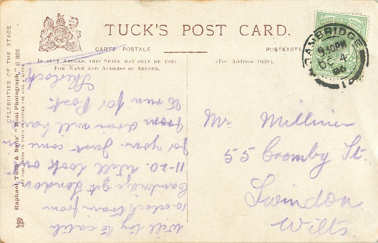 hand-coloured, same image P805 (1872-1970) In "The Earl and the Girl" Adelphi Th. London 1903, then to Lyric Th. in 1904 (371)