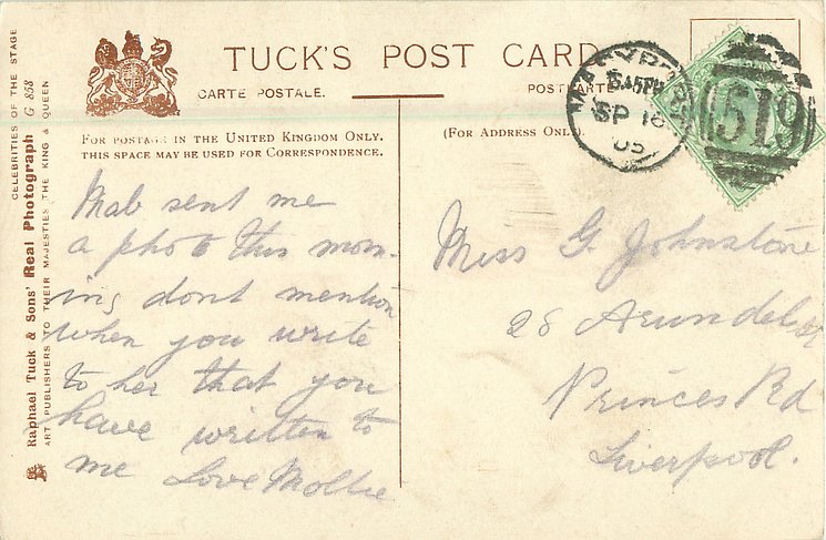 PHOTO JOHNSTON & HOFFMAN Maudi Darrell (1882-1910) was in "Talk of the Town" Lyric Th. 1905; in "The Beauty of Bath" Aldwych Th. London, 1906; died age 28 acute Appendicitis.