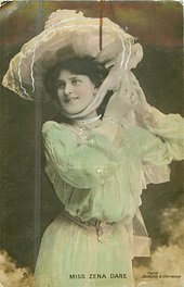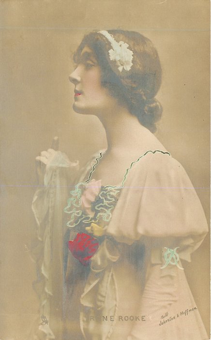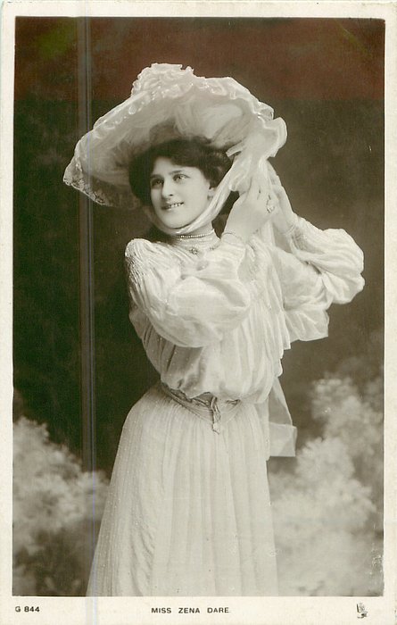 PHOTO JOHNSTON & HOFFMAN, 2 styles, hand-coloured, same image P844 Zena Dare (1887 London-1975 Brighton,Eng.) was Mrs. Higgin's in "My Fair Lady" Drury's Th. London 1958 for 5 yrs.