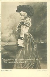 with quote "WHAT HONOUR TO BE BORN ON FORTUNE'S HILL? THE MERIT IS TO CLIMB IT." PHOTO BY LAFAYETTE Mrs. Lillie Langtry b.Jersey Channel Is. (1853-1929 Monaco) In "The Crossways" London 1902; Movie 1913 "His Neighbour's Wife"