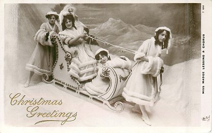 opt. CHRISTMAS GREETINGS same image1013, PHOTO DOVER STREET STUDIOS Madge Lessing 1866 London -1932 London & Chorus She was Princess Beauty in "Sleeping Beauty and the Beast" Drury Lane Th. London 1900;