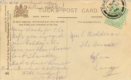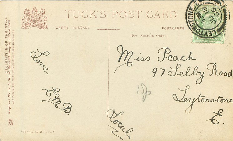 Zene Dare (1887 London-1975 Brighton) was in "The Catch of the Season" London Vaudeville Theatre 1904