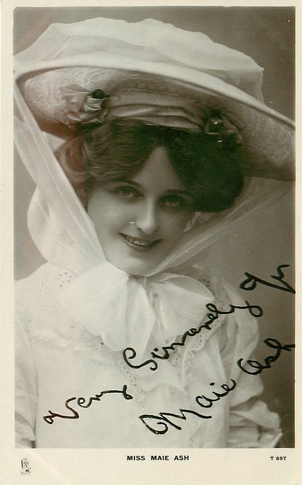 with facsimile autograph Maie Ash (1888 London-1923 Brighton Died at 35. Married Stanley Brett, Brother of Seymore Hicks in 1909.
