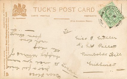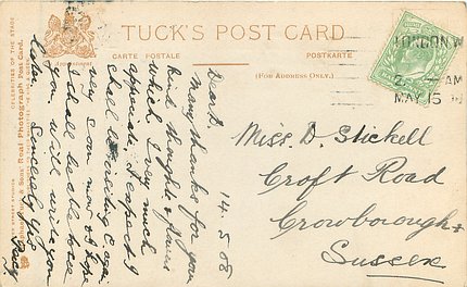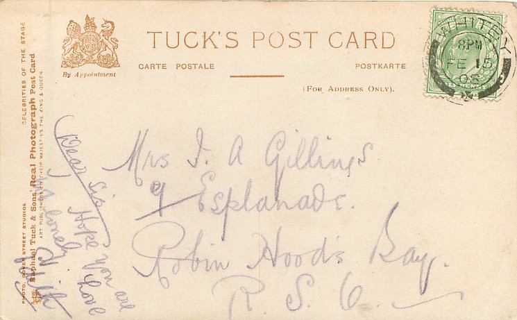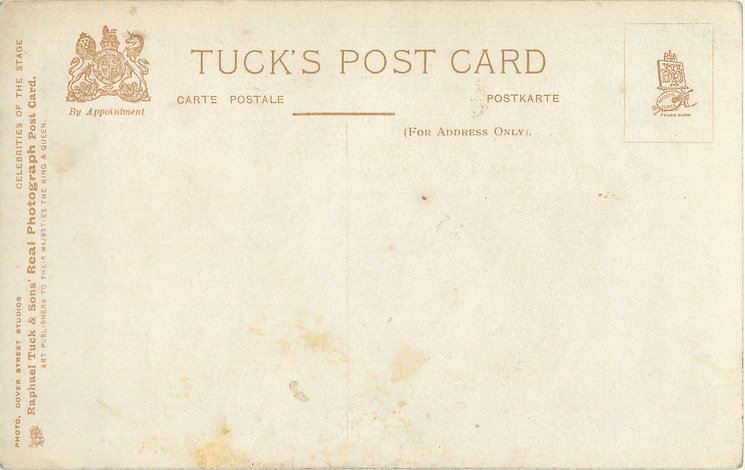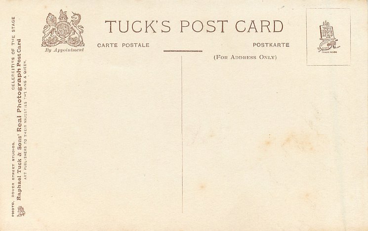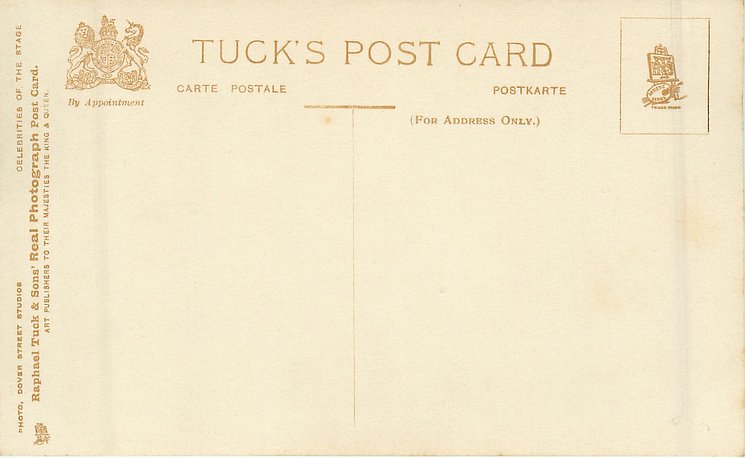 same image CELEBRITIES OF THE STAGE unnumbered REAL PHOTOGRAPH, platemarked style, PHOTO DOVER STREET STUDIOS A Gaiety Girl was in " Our Miss Gibbs" Gaiety Th. 1909 (636 performances)