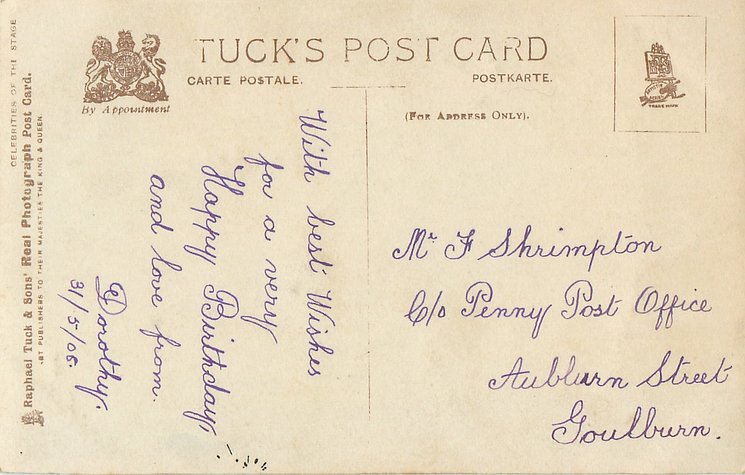 (1872-1930) in "Alice in Wonderland" Prince of Wales Th.1906; in "My Darling" Hicks Th. 1907;