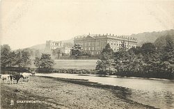 CHATSWORTH cows, river, house behind